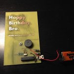 A birthday “card” I sent my brother incorporating an ATMega328 and a buzzer designed to play the overworld song from Chrono Trigger when a button is pressed. |