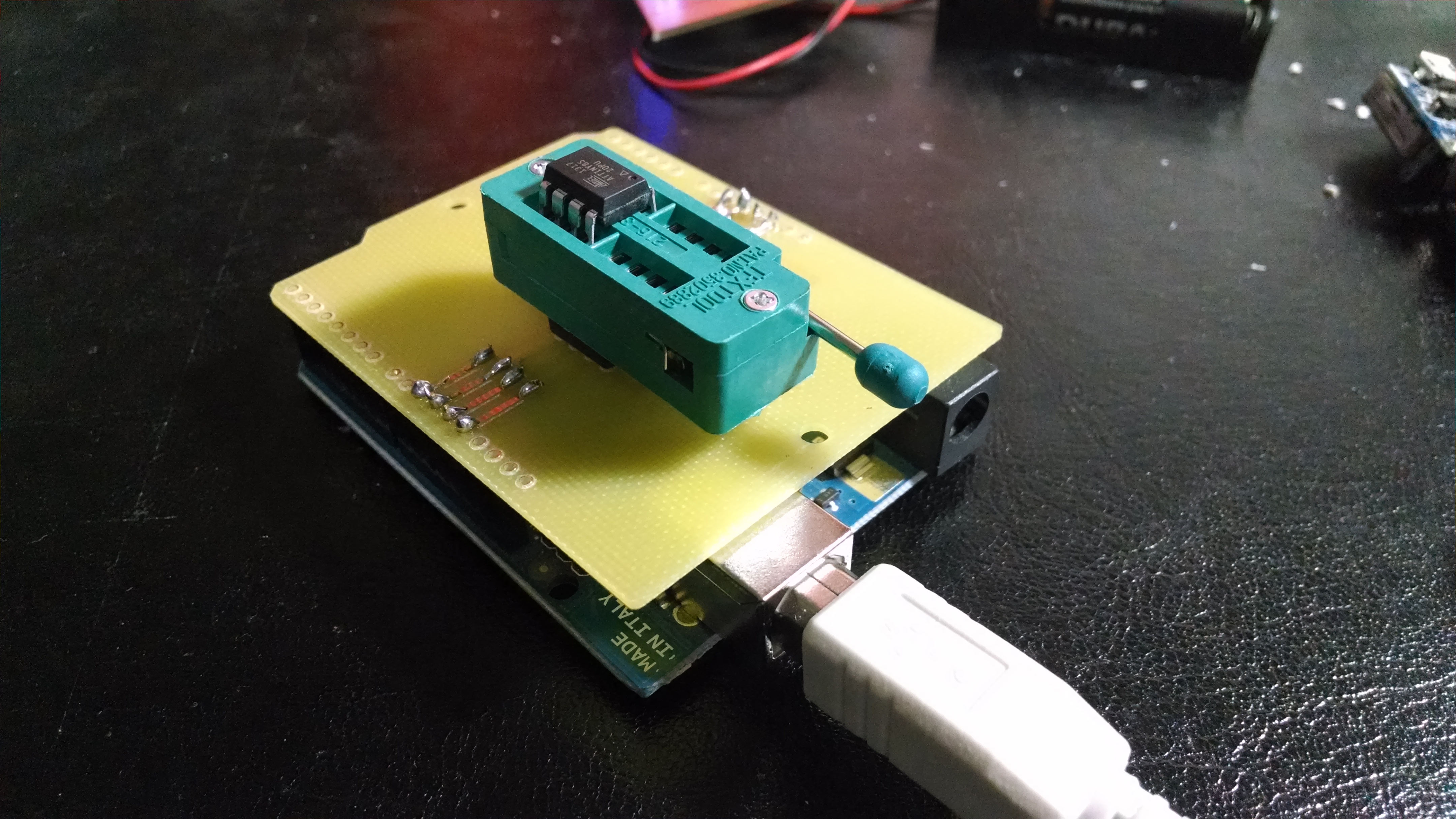 Top of completed shield – different angle Published July 3, 2014 at 4320 × 2432 in ATtiny85 Flashing Shield