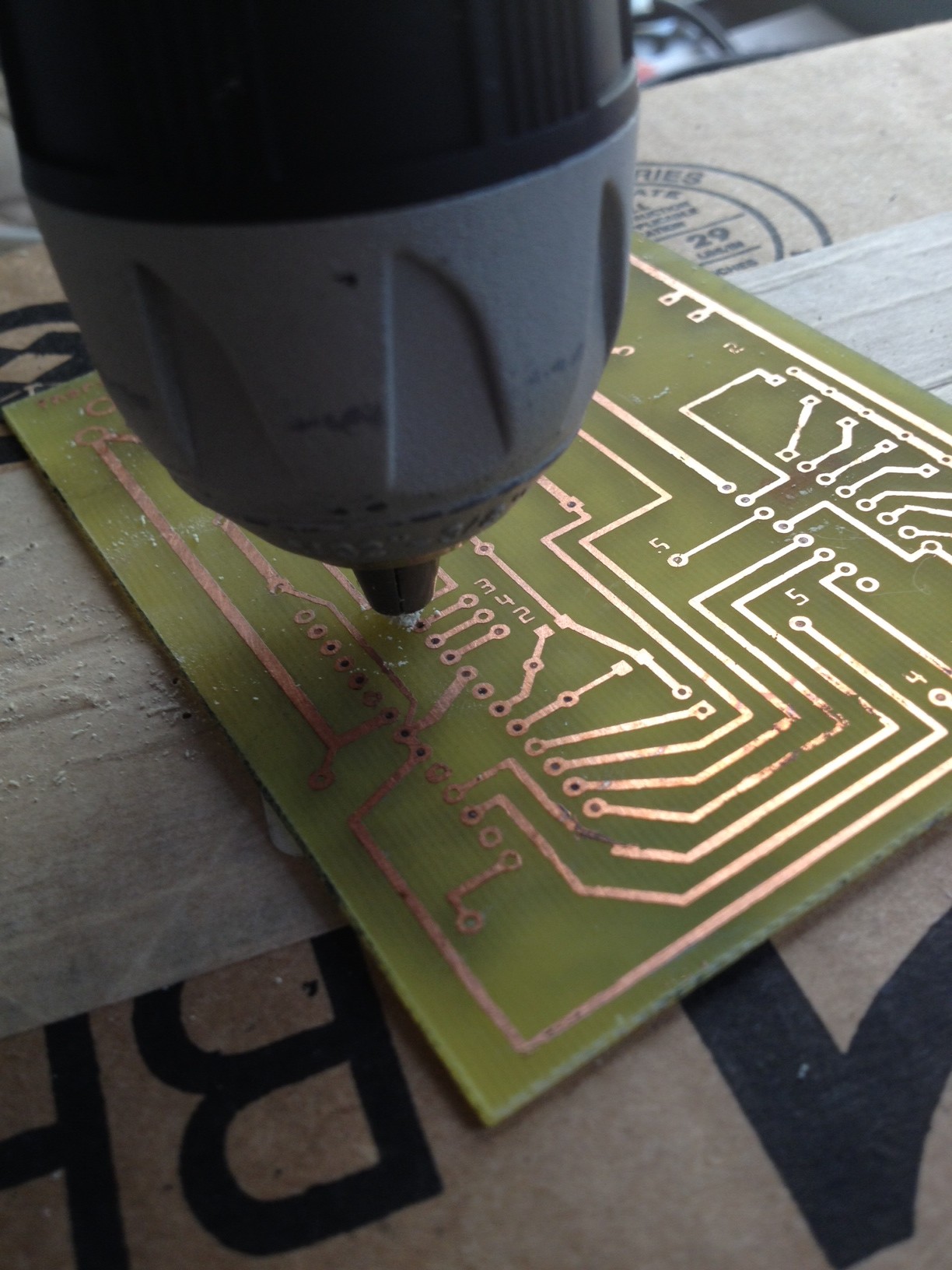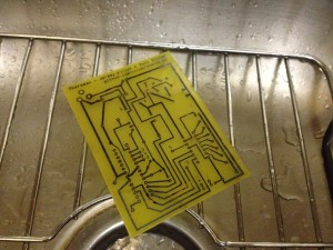 I then etched the board with ferric chloride for about an hour.